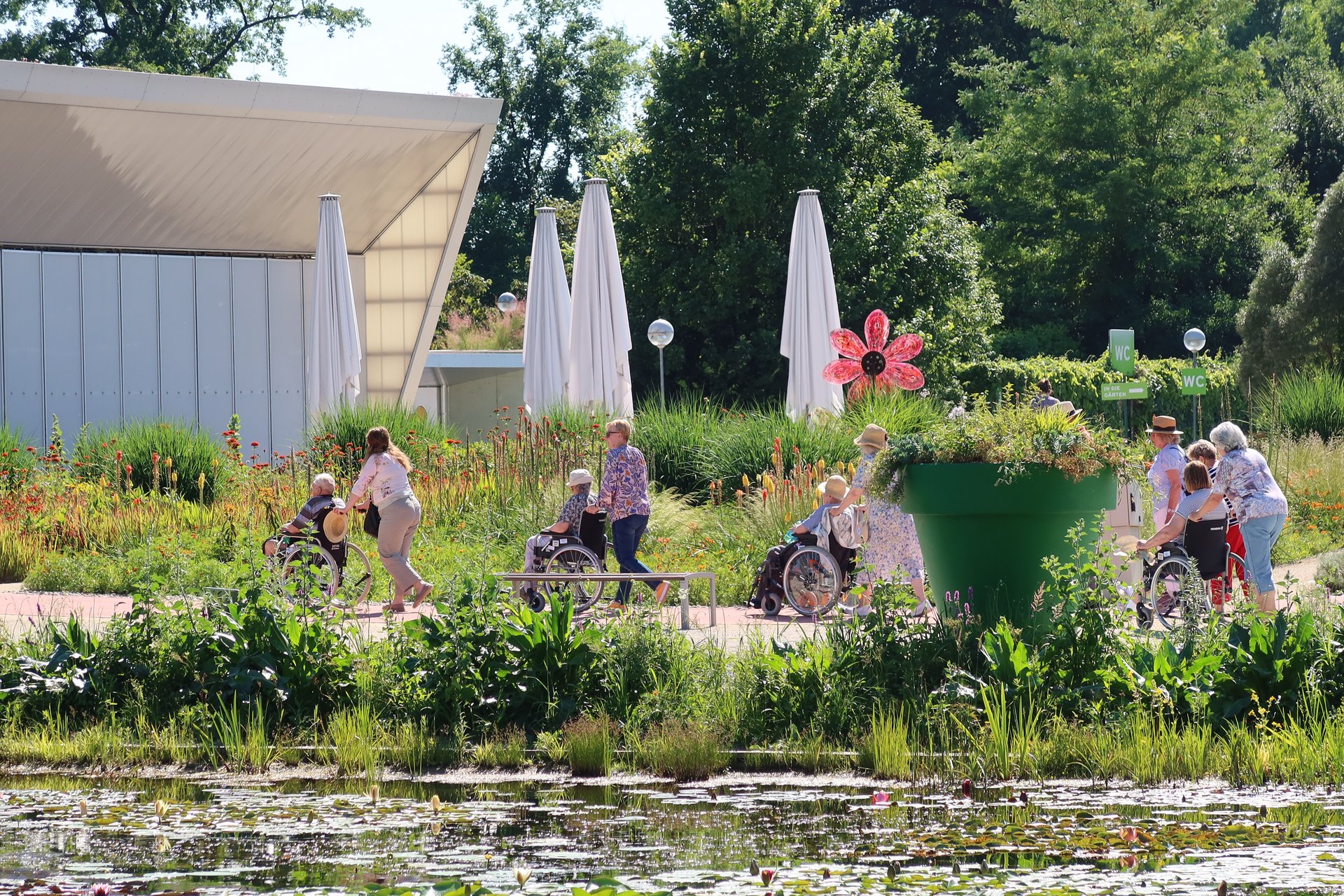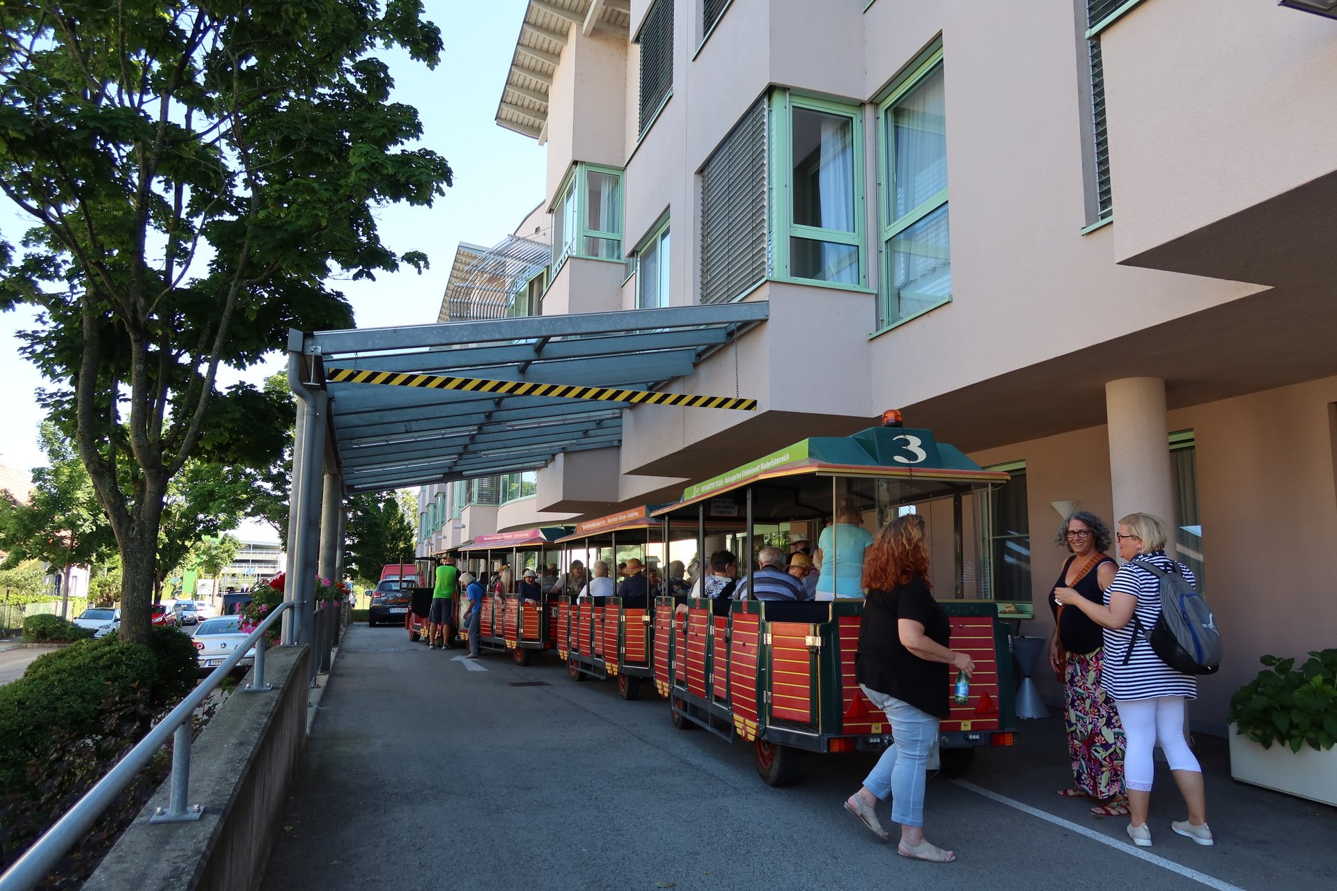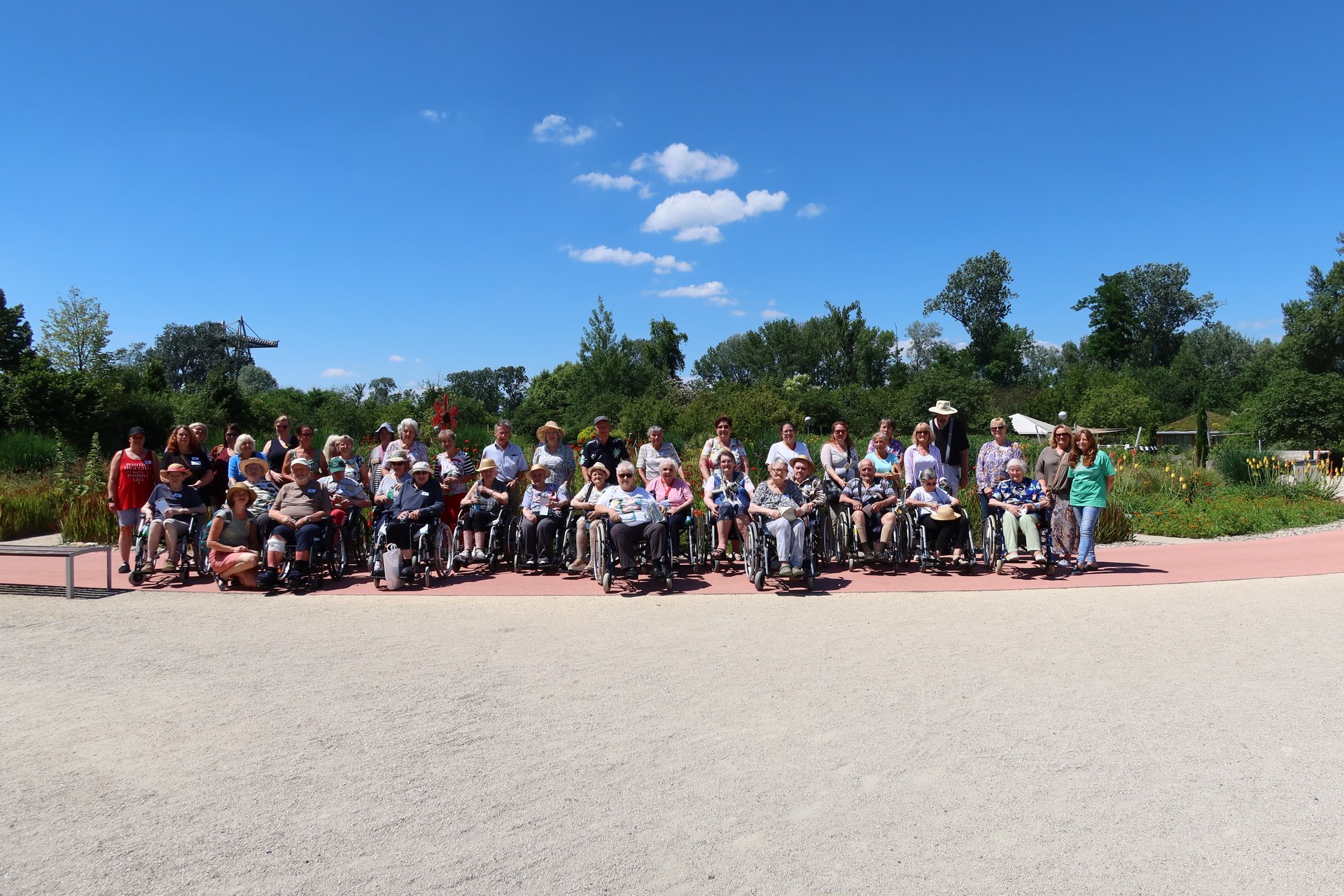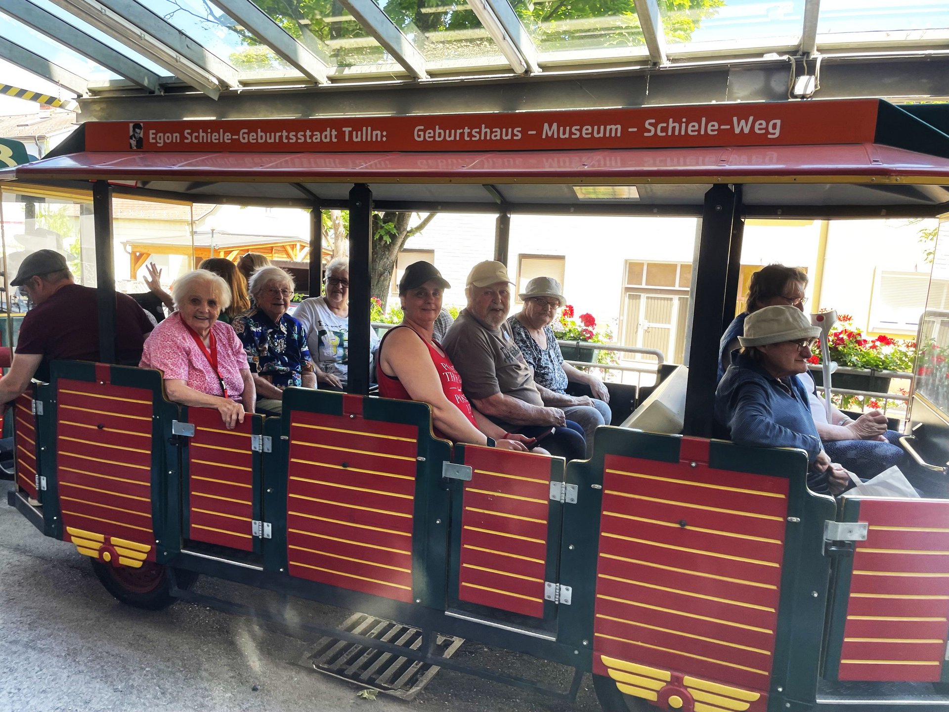 Rund 25 Bewohnerinnen und Bewohner unseres Hauses erlebten einen wunderschönen Nachmittag in „Die Garten Tulln“. Begleitet wurden sie dabei von haupt- und ehrenamtlichen Mitarbeiterinnen und Mitarbeitern. Aufgrund des guten Wetters war bereits die Anreise mit dem „Tulli“ ein unvergessliches Erlebnis. In den rollstuhlfreundlichen Gärten wartete ein traumhaftes Blumenmeer auf die Gruppe. Besonders Abenteuerlustige fuhren mit dem Lift auf den höchsten Punkt des Baumwipfelweges, wo der Weitblick bis zur Donau für Begeisterung sorgte. Gesponsert wurde der Ausflug vom Verein „Ehrenamtliches Besuchsteam“, der auch Begleitpersonen für den Nachmittag zur Verfügung stellte. Bei Kaffee und Kuchen in „Die Gärtnerei“ ließen alle den Tag genussvoll ausklingen. „Nächstes Jahr fahre ich wieder mit“, so eine müde, aber glückliche Bewohnerin, nach ihrer Rückkehr ins PBZ Tulln.