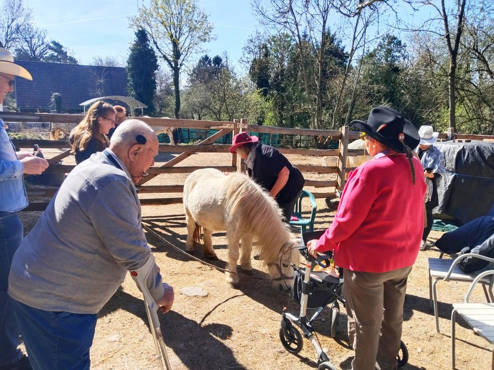Zwei Bewohnerinnen und Bewohner des Wohnbereichs 4 am Weißen Hof folgten kürzlich einer ganz besonderen Einladung: Ingrid Seebacher und ihre Tochter Christine Handelsberger luden zu einem Besuch „Am Haselhof“ ein. Der Haselhof, idyllisch im Wienerwald gelegen, bietet unter anderem tier- und naturgestützte Therapie für Schulen, Kindergärten und Seniorinnen und Senioren an.