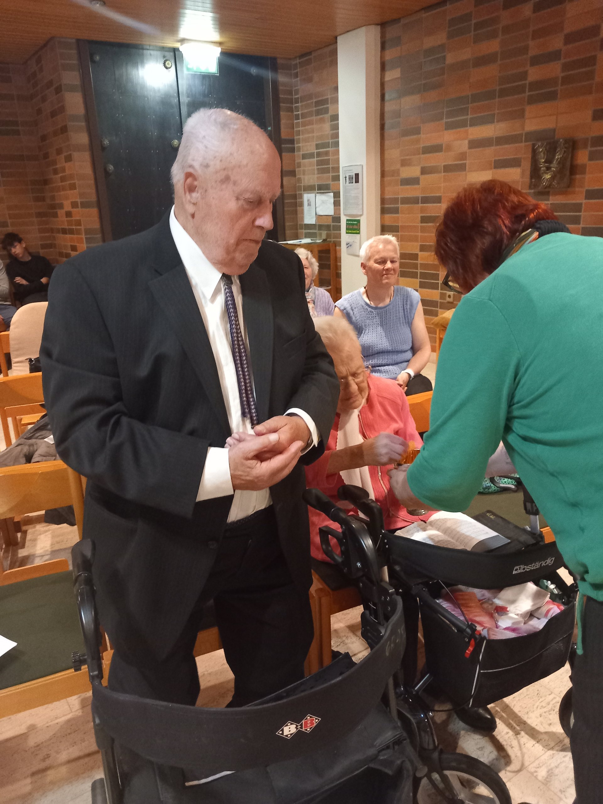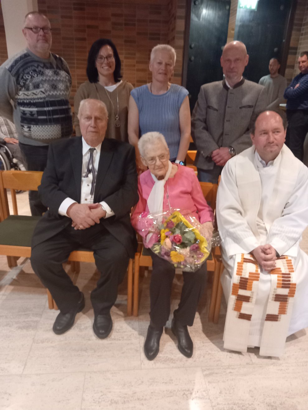 Zur Feier der Eisernen Hochzeit kamen Kinder, Freunde und Verwandte des Jubelpaares zusammen. Im Rahmen eines feierlichen Gottesdienstes, gestaltet von Pfarrer Eusebiu Bulai, dem Ortspfarrer ihrer Heimatgemeinde Tulbing, wurde dieses besondere Jubiläum gebührend gewürdigt. Die Seelsorgerin Helma Wachter bereitete passende Texte für die Feier vor, musikalisch begleitet wurde der Gottesdienst von Seelsorgerin Maria-Anna Hirsch an der Gitarre. Auch zahlreiche Bewohnerinnen und Bewohner des Hauses nahmen an der Feier teil. Die Bürgermeisterin von Tulbing ließ es sich ebenfalls nicht nehmen, dem Ehepaar persönlich zu gratulieren.