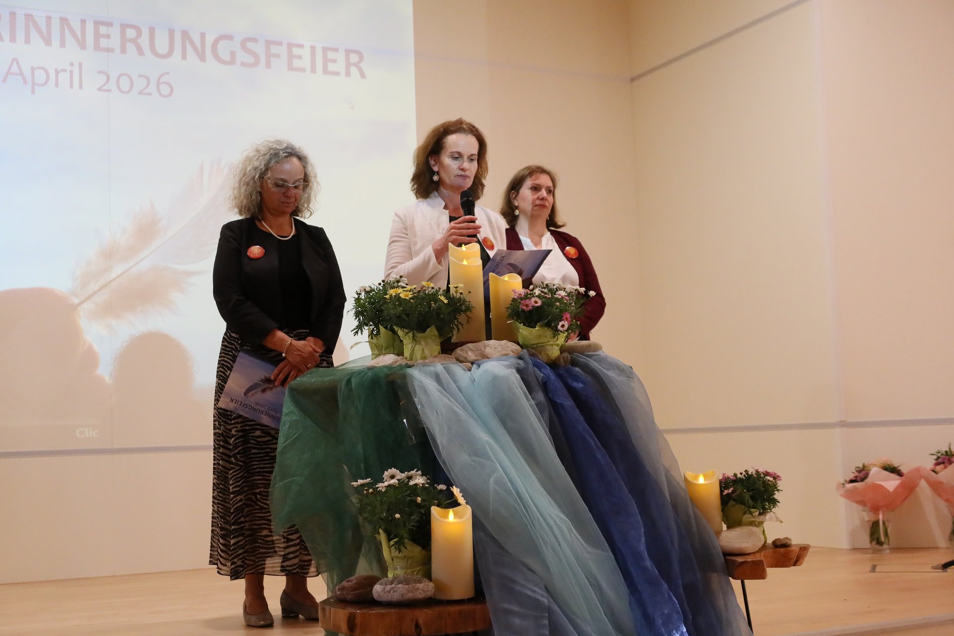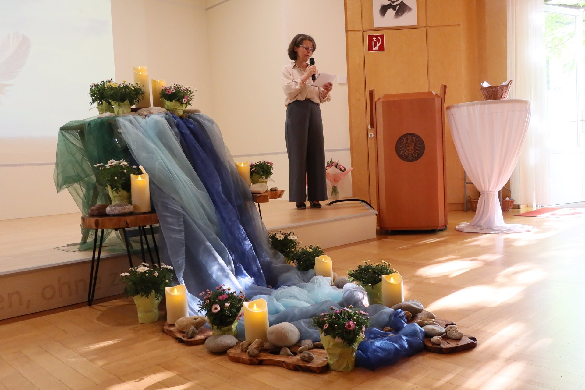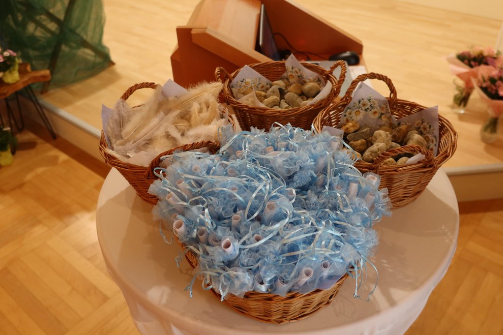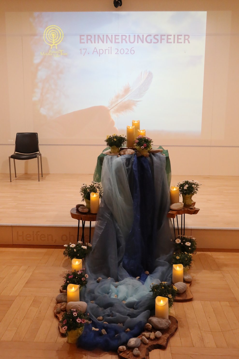 Symbolisch wurde das Motto durch einen Stein und eine Feder aufgegriffen. Während der Feier lasen Mitglieder des MPT-Teams die Namen aller Verstorbenen vor und Steine wurden an die Teilnehmenden ausgegeben. Diese wurden im Rahmen eines gemeinsamen Rituals symbolisch „im Fluss des Lebens“ abgelegt. Im Anschluss durfte jede Besucherin und jeder Besucher eine Feder mitnehmen, die als Zeichen der Leichtigkeit und der bleibenden Erinnerung gedacht war. Durch das Programm führte - mit großem Einfühlungsvermögen -Andrea Hanni-Stubreiter, organisiert wurde der Abend von Mirela Nezic.