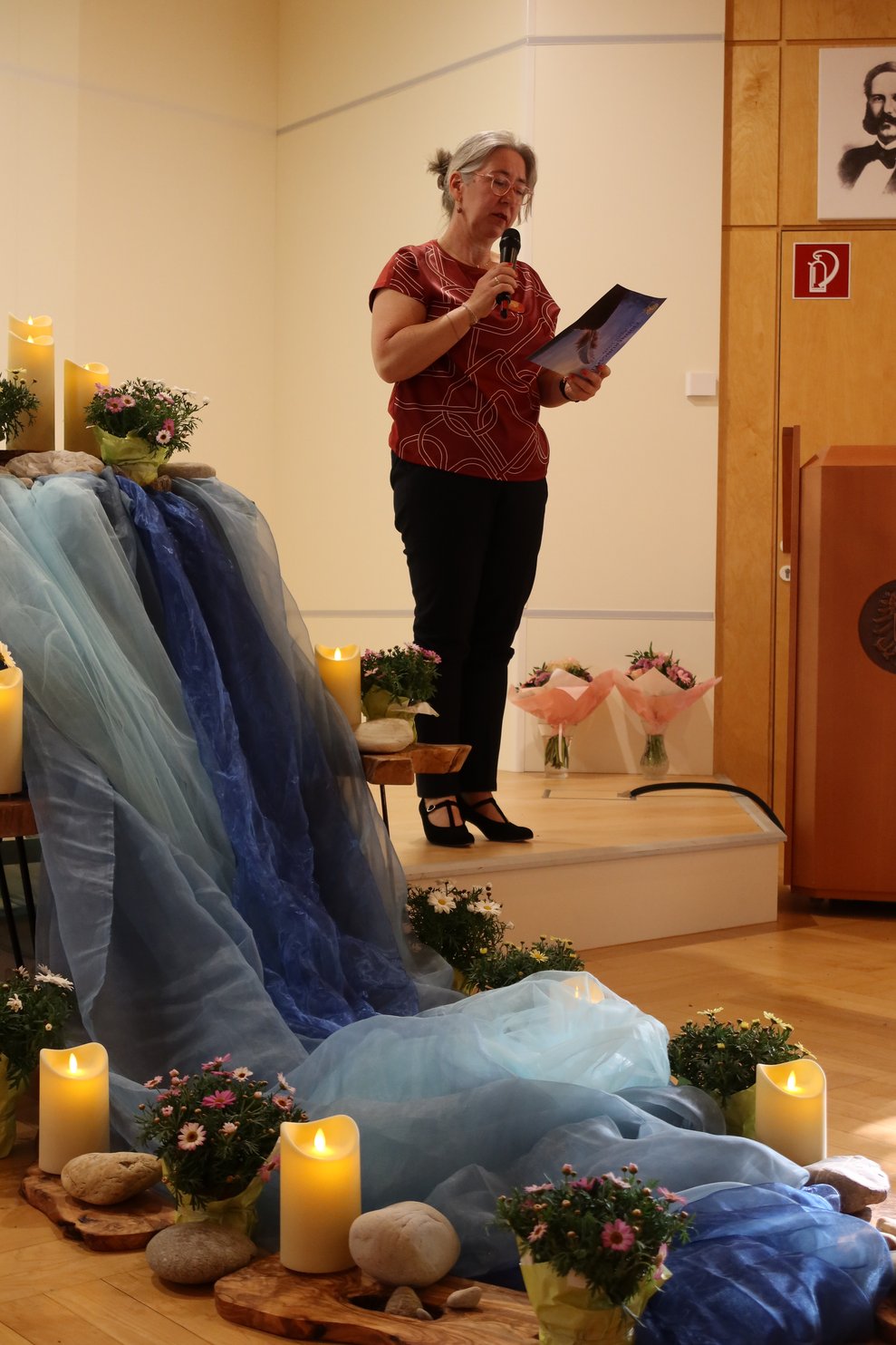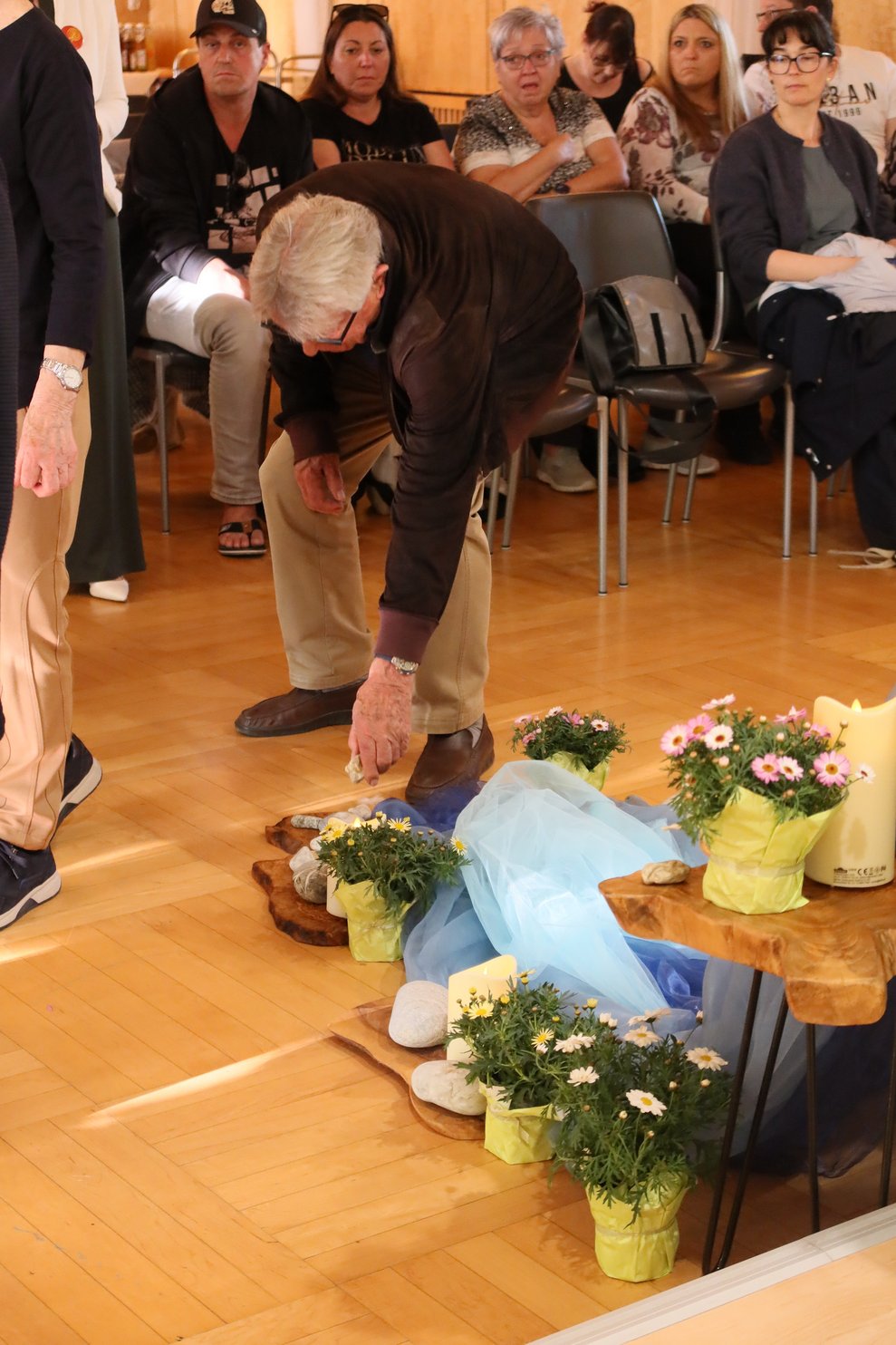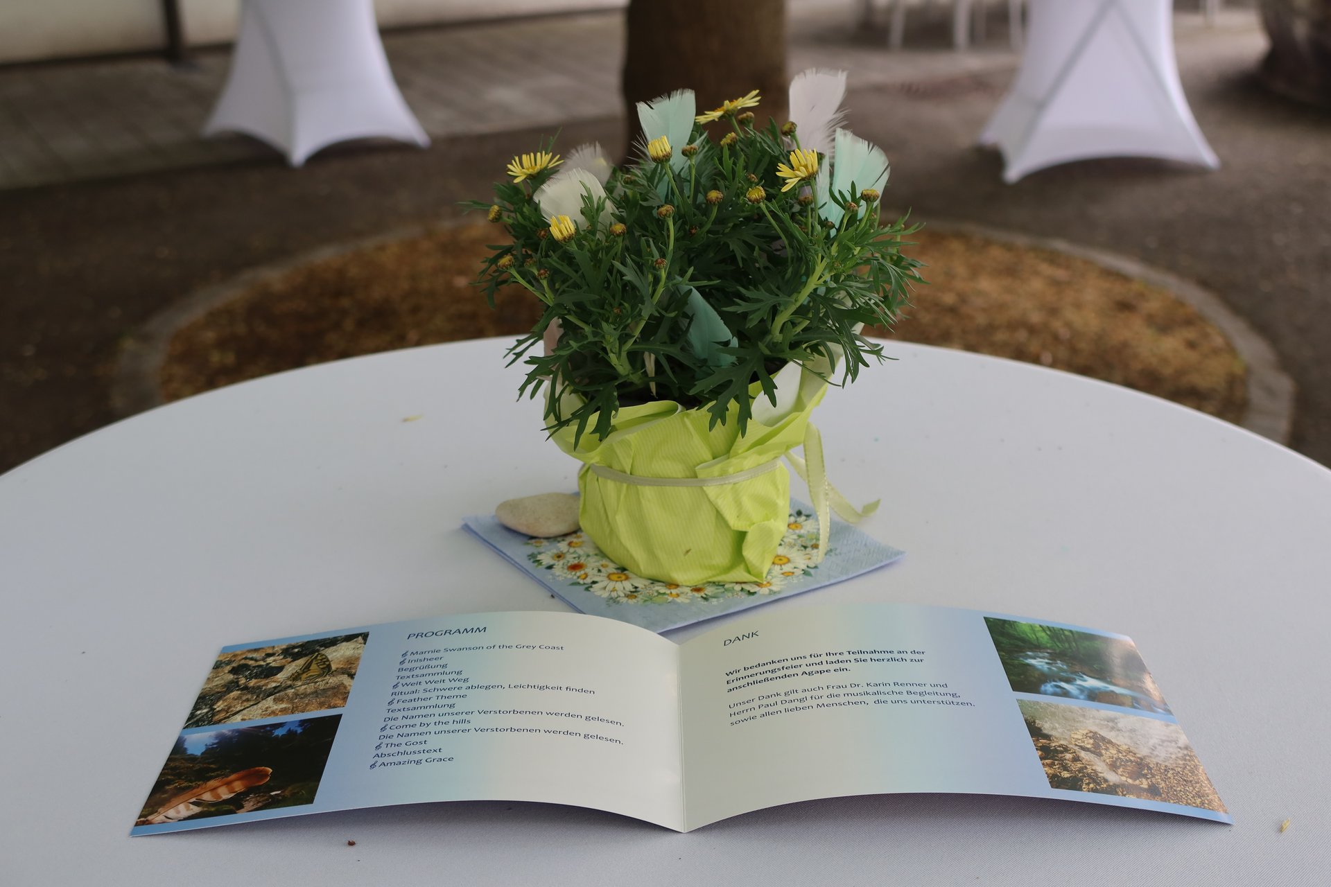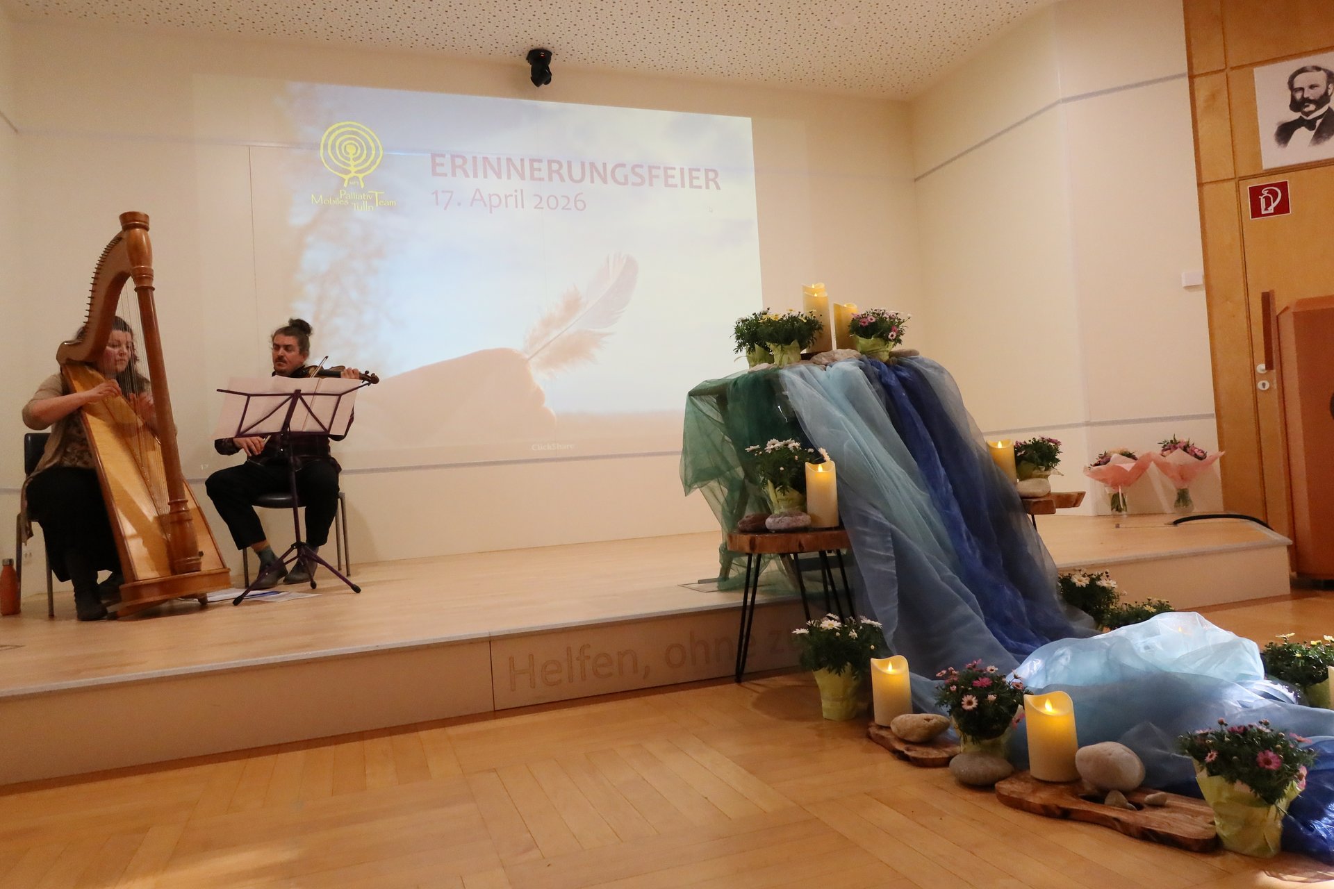 Symbolisch wurde das Motto durch einen Stein und eine Feder aufgegriffen. Während der Feier lasen Mitglieder des MPT-Teams die Namen aller Verstorbenen vor und Steine wurden an die Teilnehmenden ausgegeben. Diese wurden im Rahmen eines gemeinsamen Rituals symbolisch „im Fluss des Lebens“ abgelegt. Im Anschluss durfte jede Besucherin und jeder Besucher eine Feder mitnehmen, die als Zeichen der Leichtigkeit und der bleibenden Erinnerung gedacht war. Durch das Programm führte - mit großem Einfühlungsvermögen -Andrea Hanni-Stubreiter, organisiert wurde der Abend von Mirela Nezic.