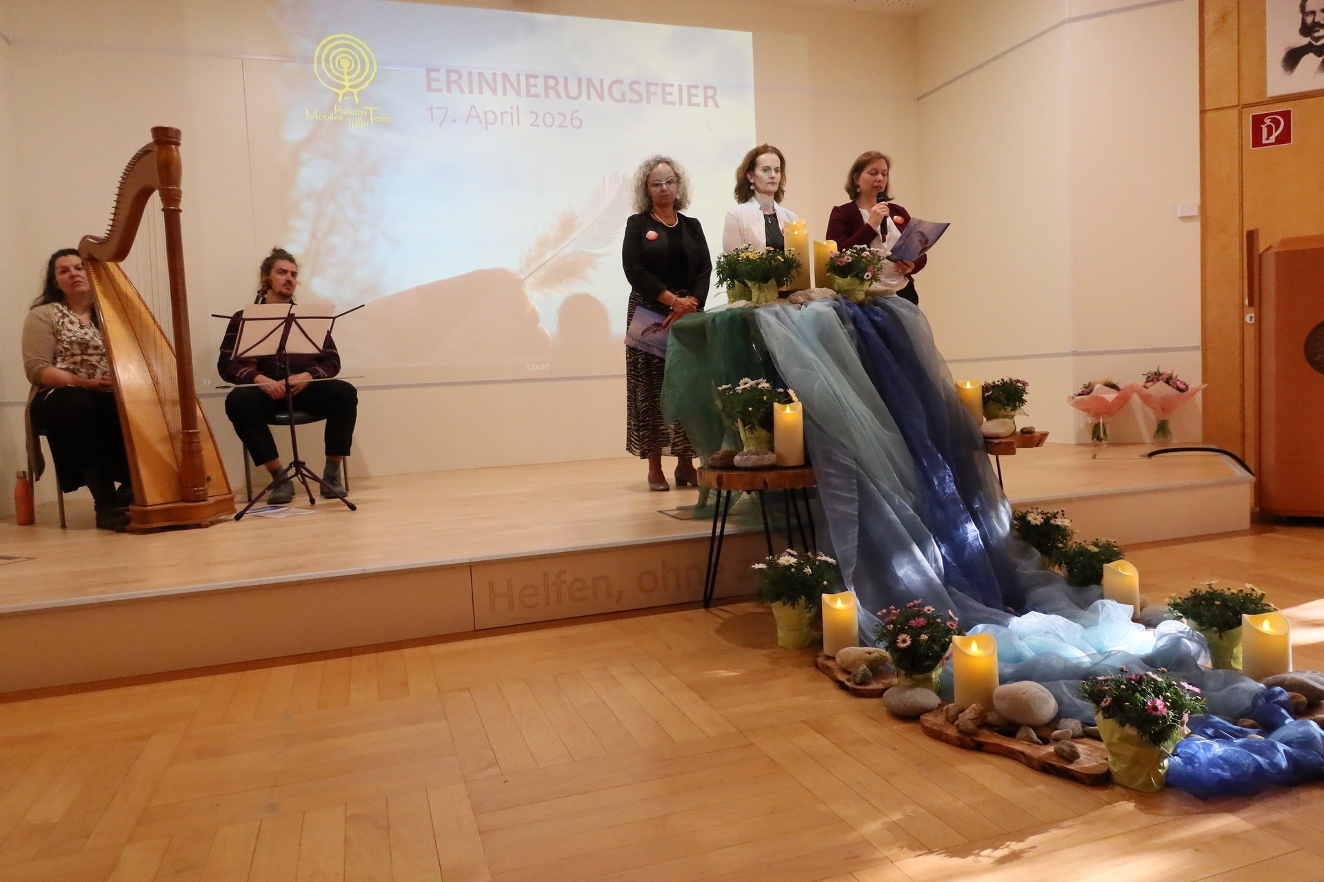 Das Mobile Palliativteam (MPT) Tulln lud zur Erinnerungsfeier für die Verstorbenen des vergangenen Jahres ein. Erstmals fand die Veranstaltung im Festsaal des Österreichischen Roten Kreuzes in Tulln statt und war gut besucht. Die einfühlsame Feier stand unter dem Thema „Schwere ablegen – Leichtigkeit finden“ und bot Familie, Angehörigen, Freundinnen und Freunden auf eine ganz besondere Weise Raum für gemeinsames Gedenken.