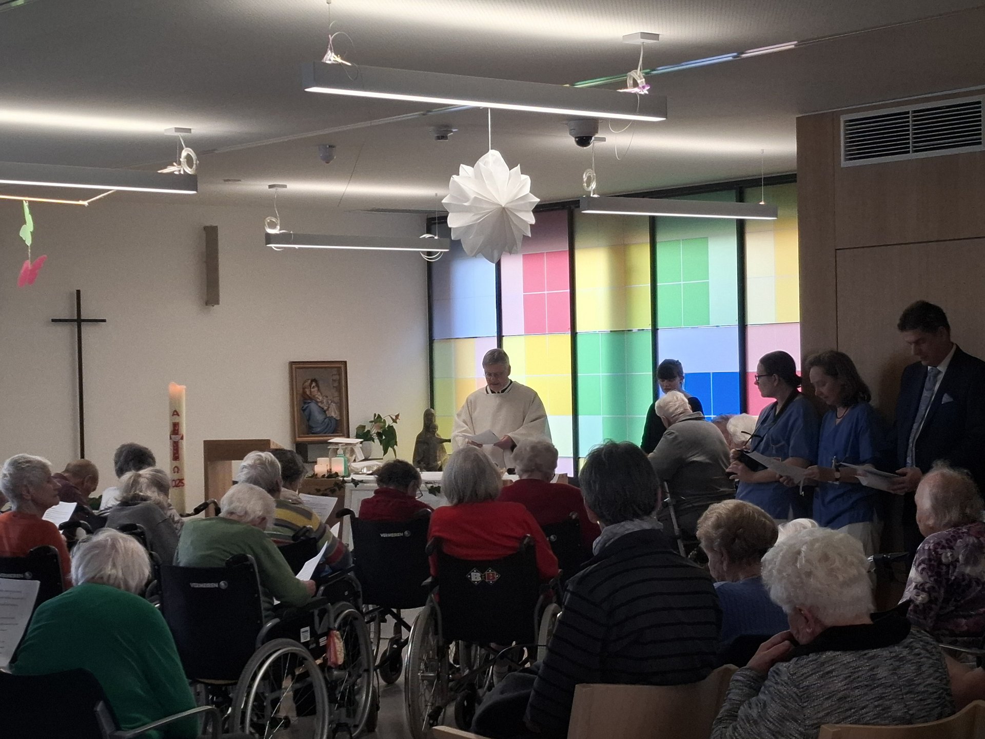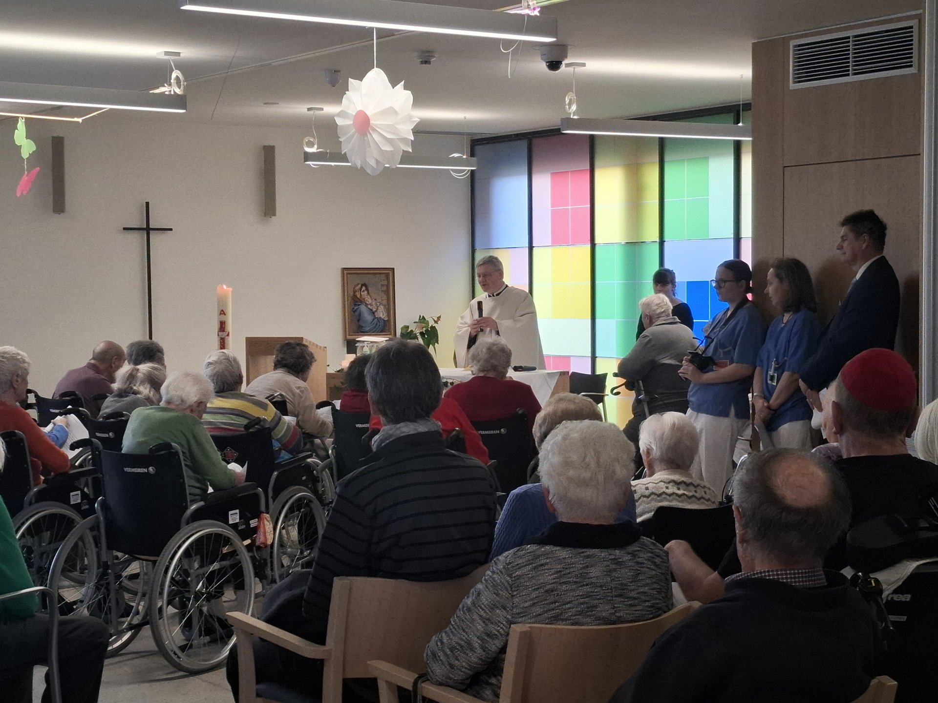 Am Freitag, den 20.03., fand im PBZ Korneuburg eine Gedenkmesse für die Verstorbenen statt. Auch unsere Bewohnerinnen und Bewohner des Bereichs Ringelblume nahmen an dieser besonderen Feier teil. Die Gedenkmesse war gut besucht und von einer sehr schönen wie auch emotionalen Atmosphäre geprägt.