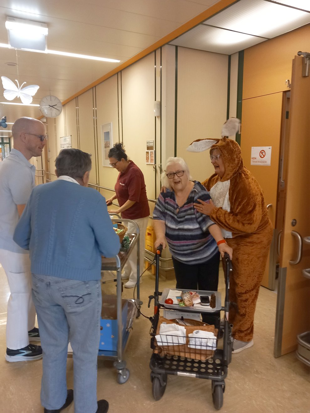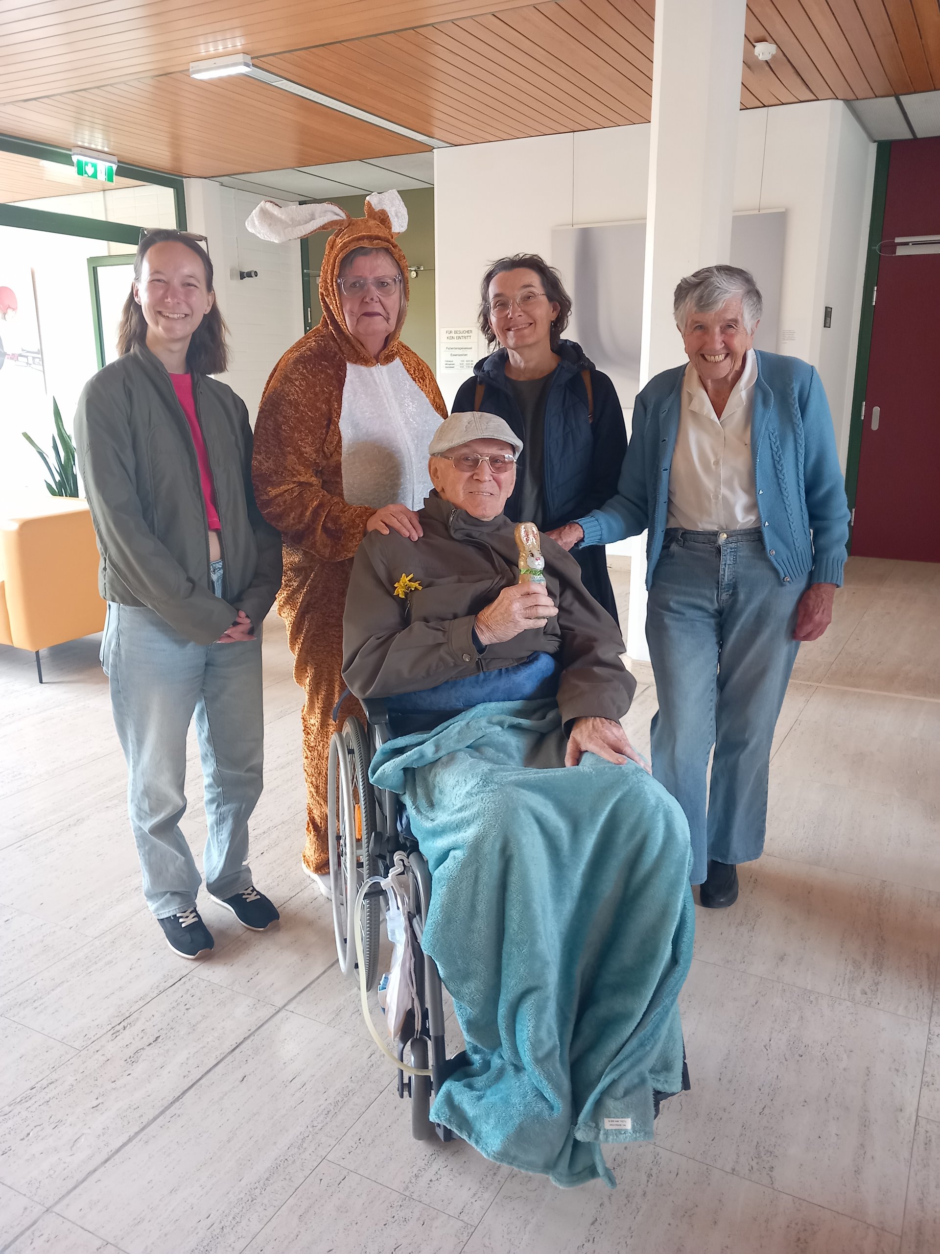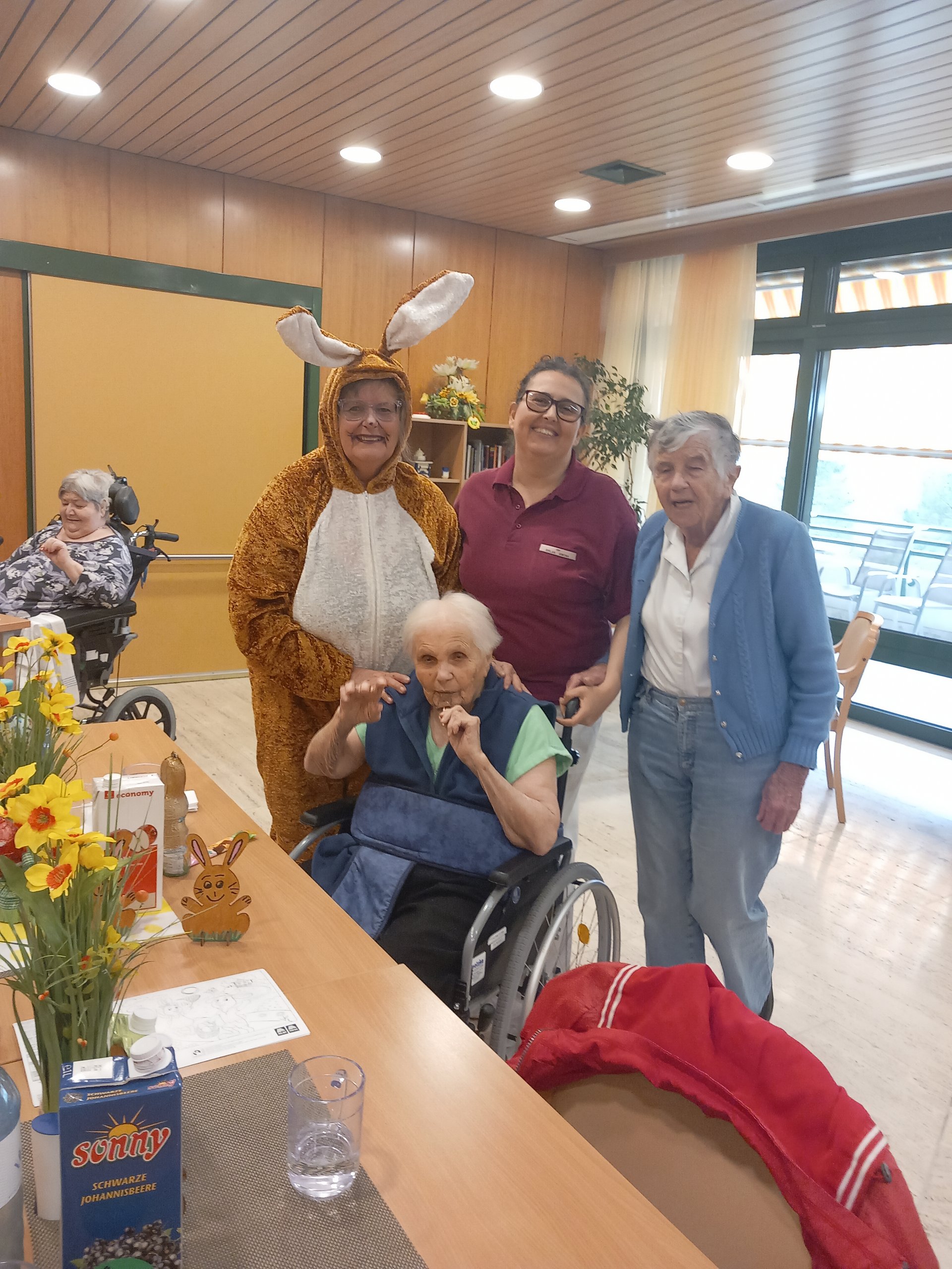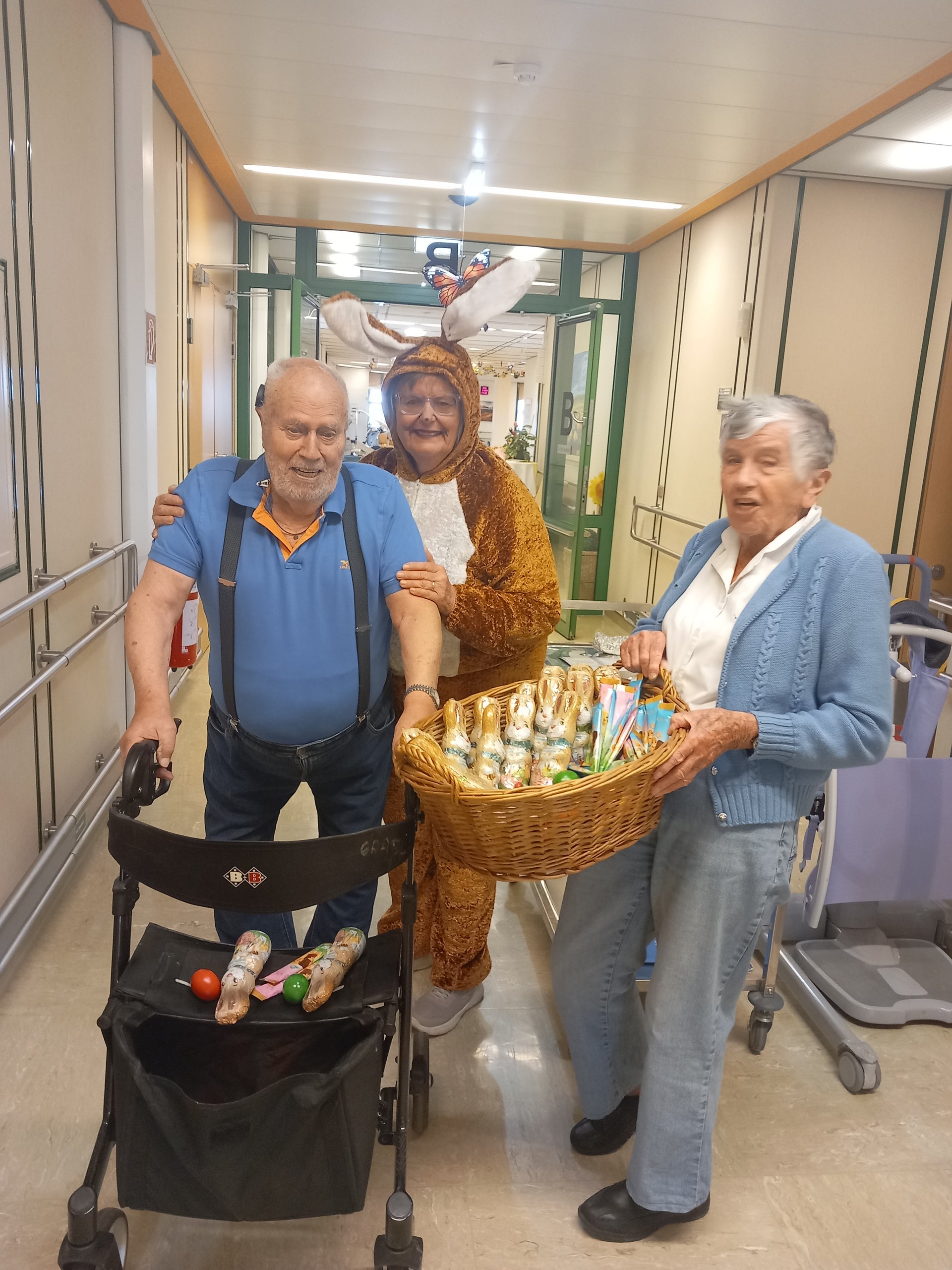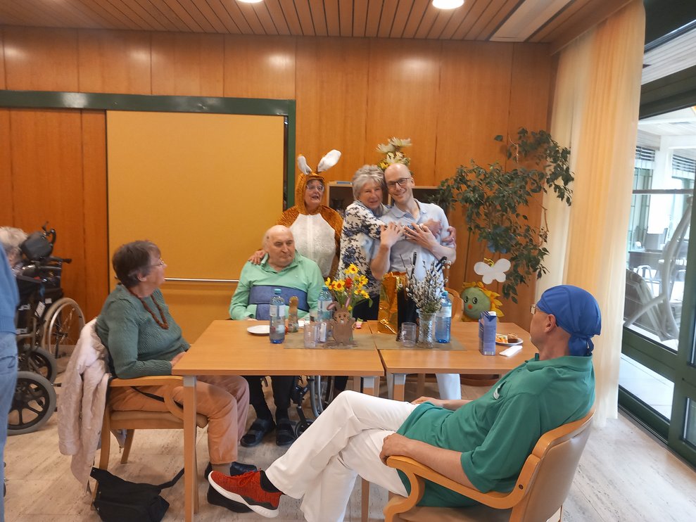 Der Osterhase kam persönlich vorbei und verteilte kleine Geschenke. Unterstützung erhielt er dabei von unseren engagierten haupt- und ehrenamtlichen Mitarbeiterinnen und Mitarbeitern. Die liebevoll organisierte Überraschung kam bei allen sehr gut an und sorgte für viele erfreute Gesichter bei unseren Bewohnerinnen und Bewohnern.