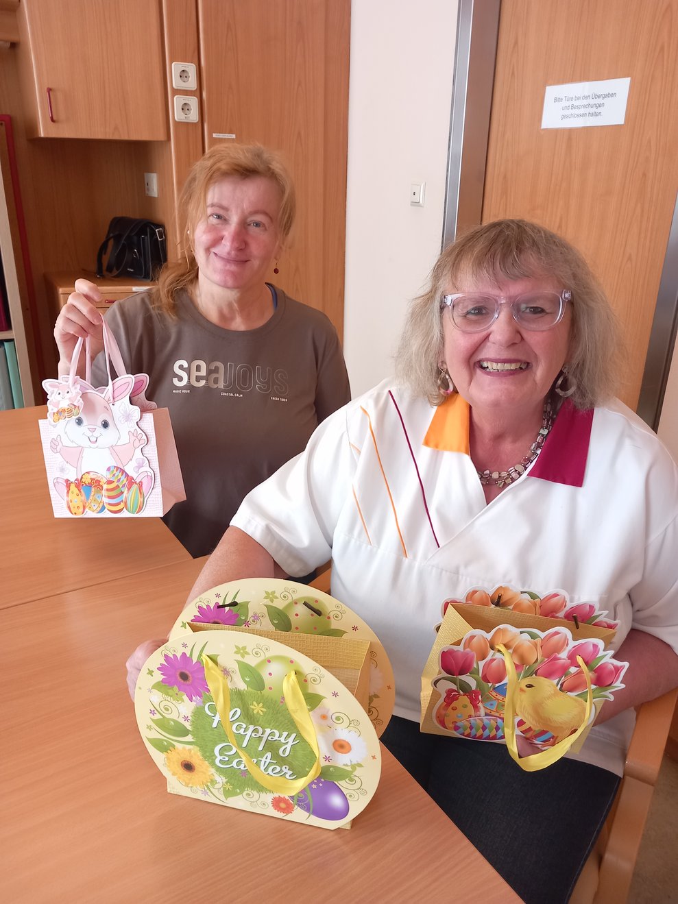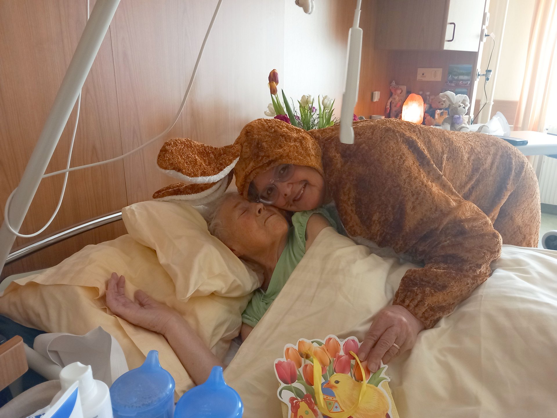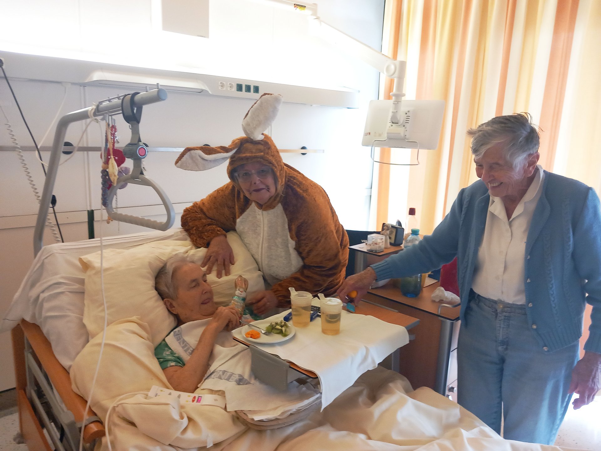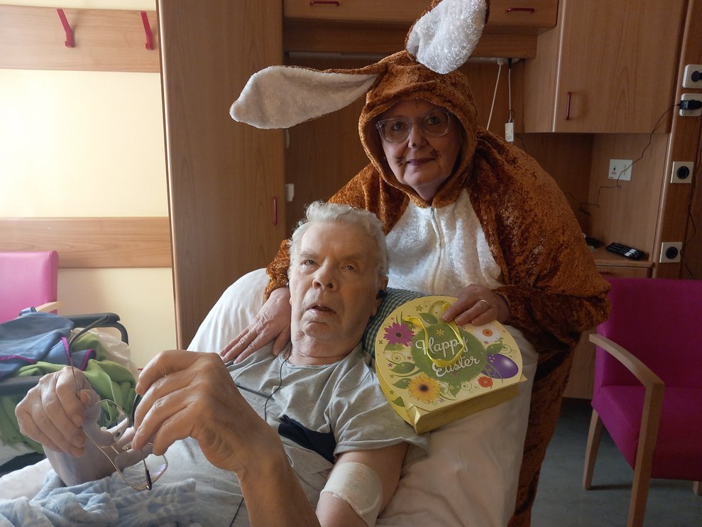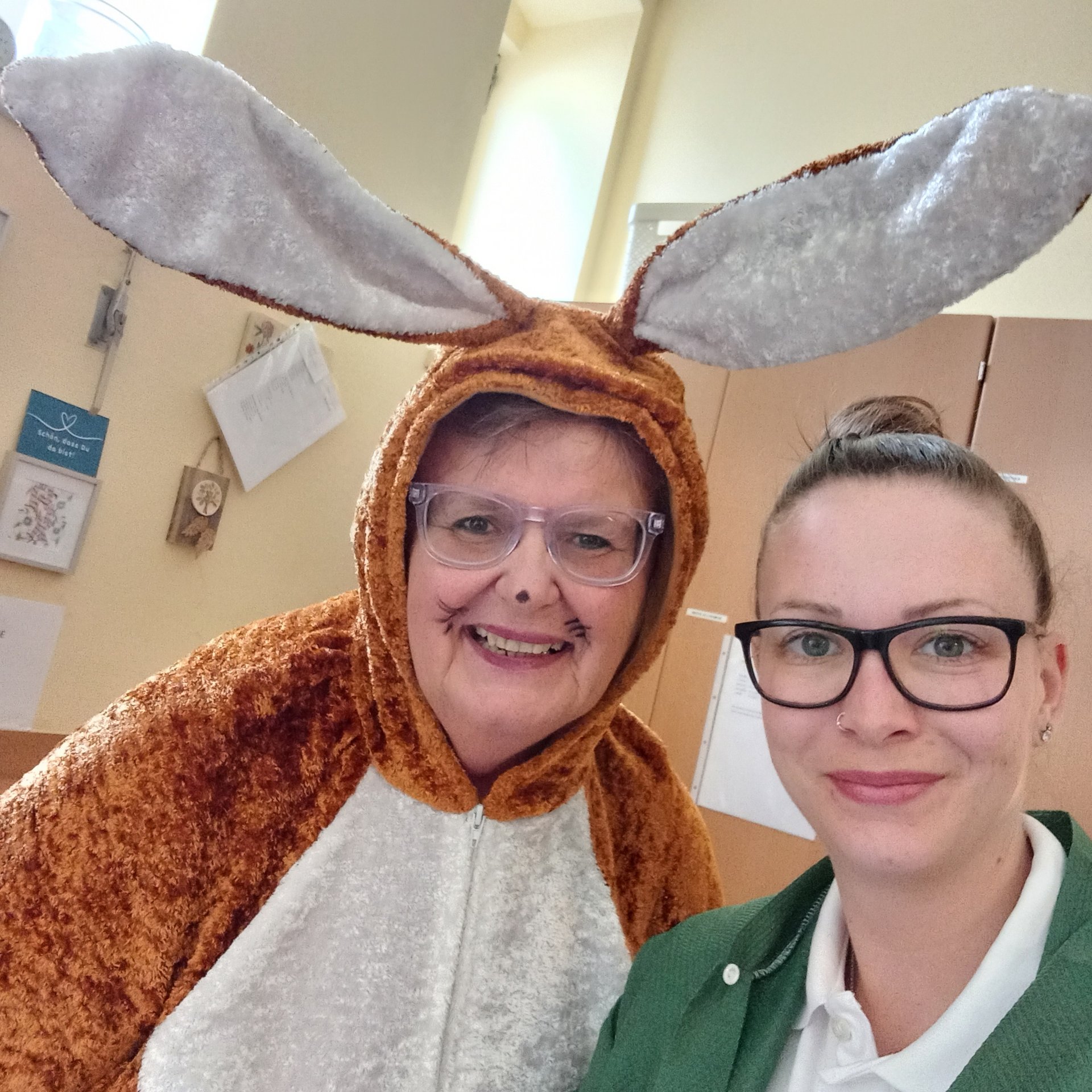 Der Osterhase kam persönlich vorbei und verteilte kleine Geschenke. Unterstützung erhielt er dabei von unseren engagierten haupt- und ehrenamtlichen Mitarbeiterinnen und Mitarbeitern. Die liebevoll organisierte Überraschung kam bei allen sehr gut an und sorgte für viele erfreute Gesichter bei unseren Bewohnerinnen und Bewohnern.