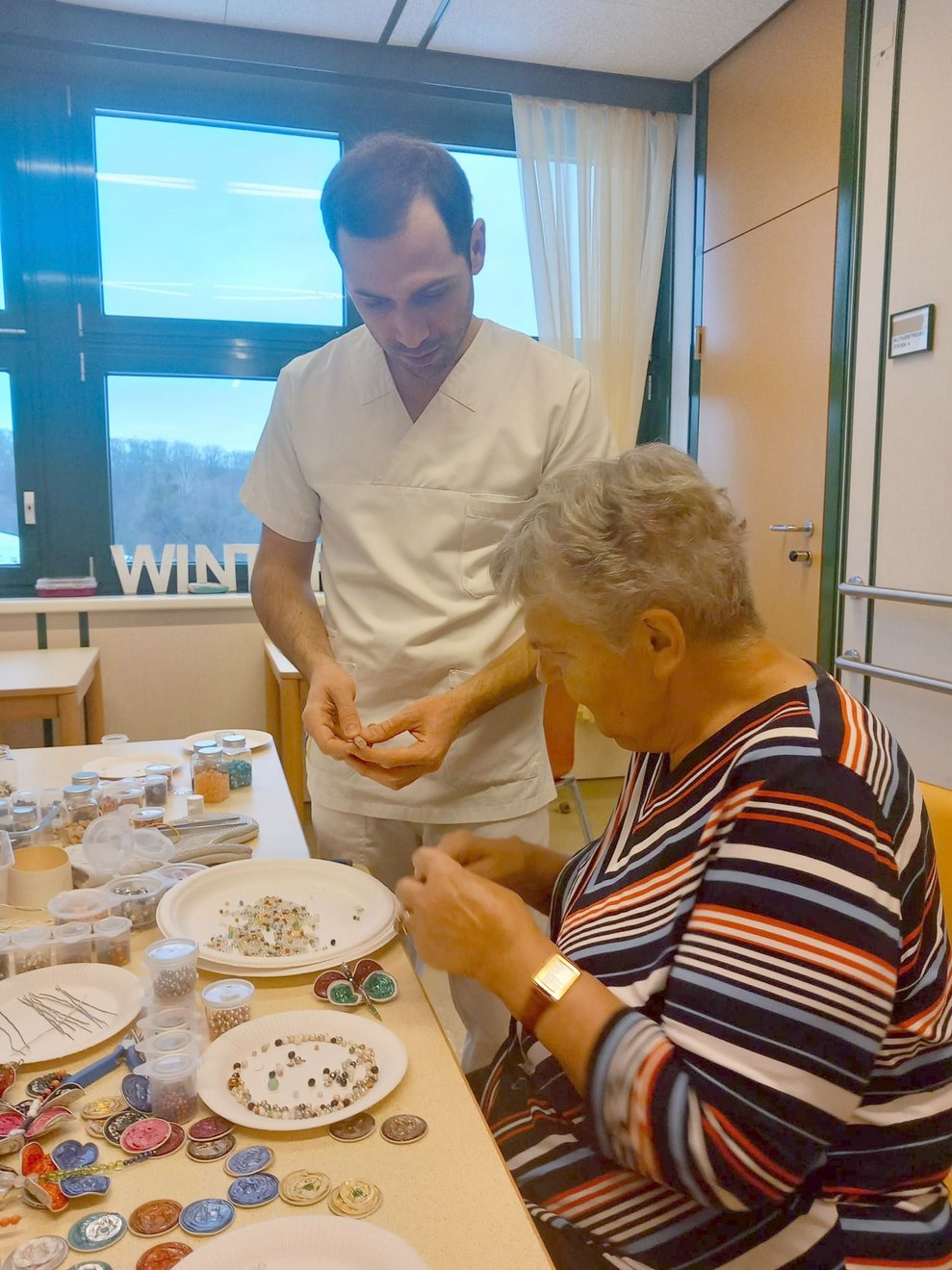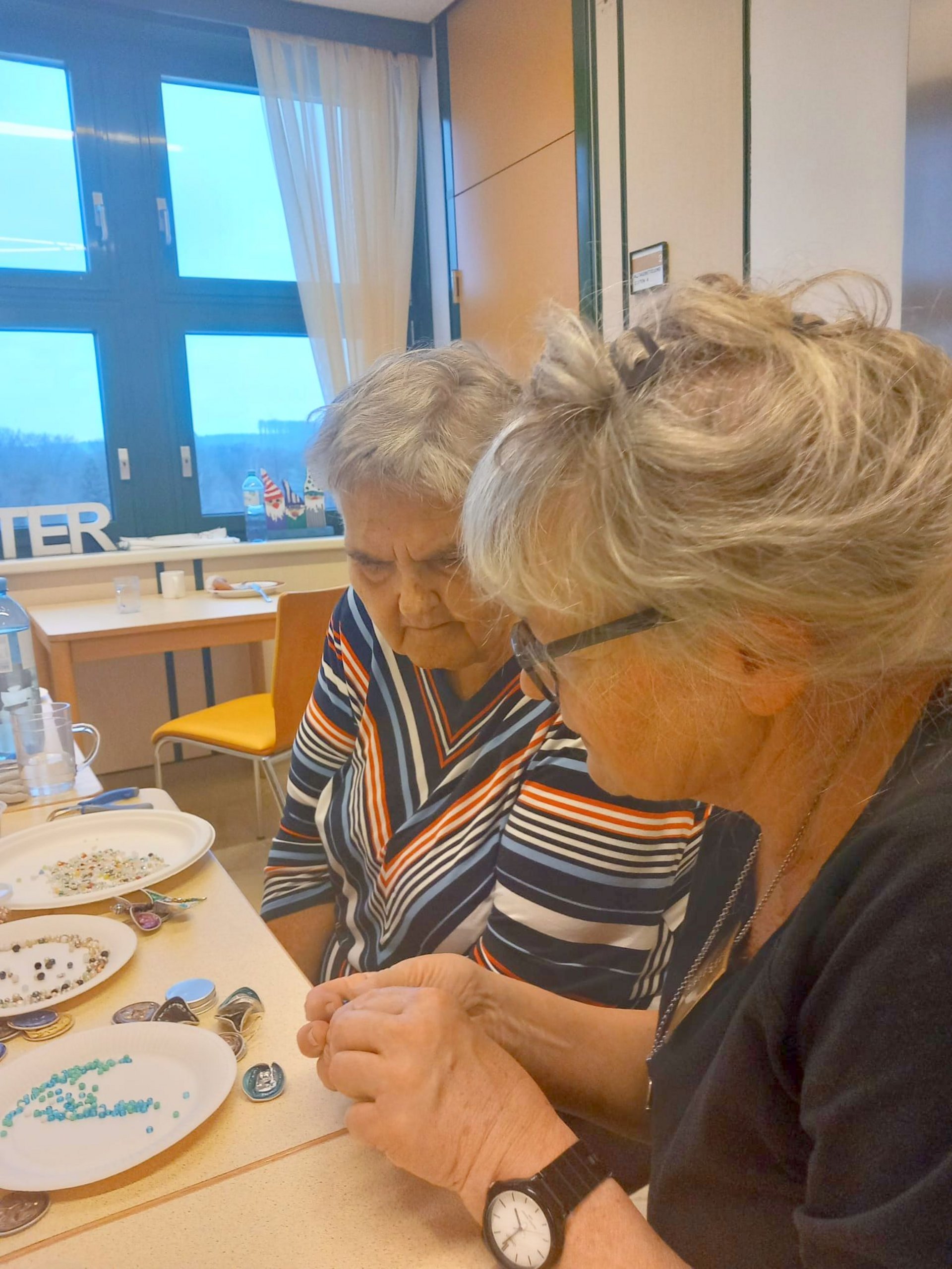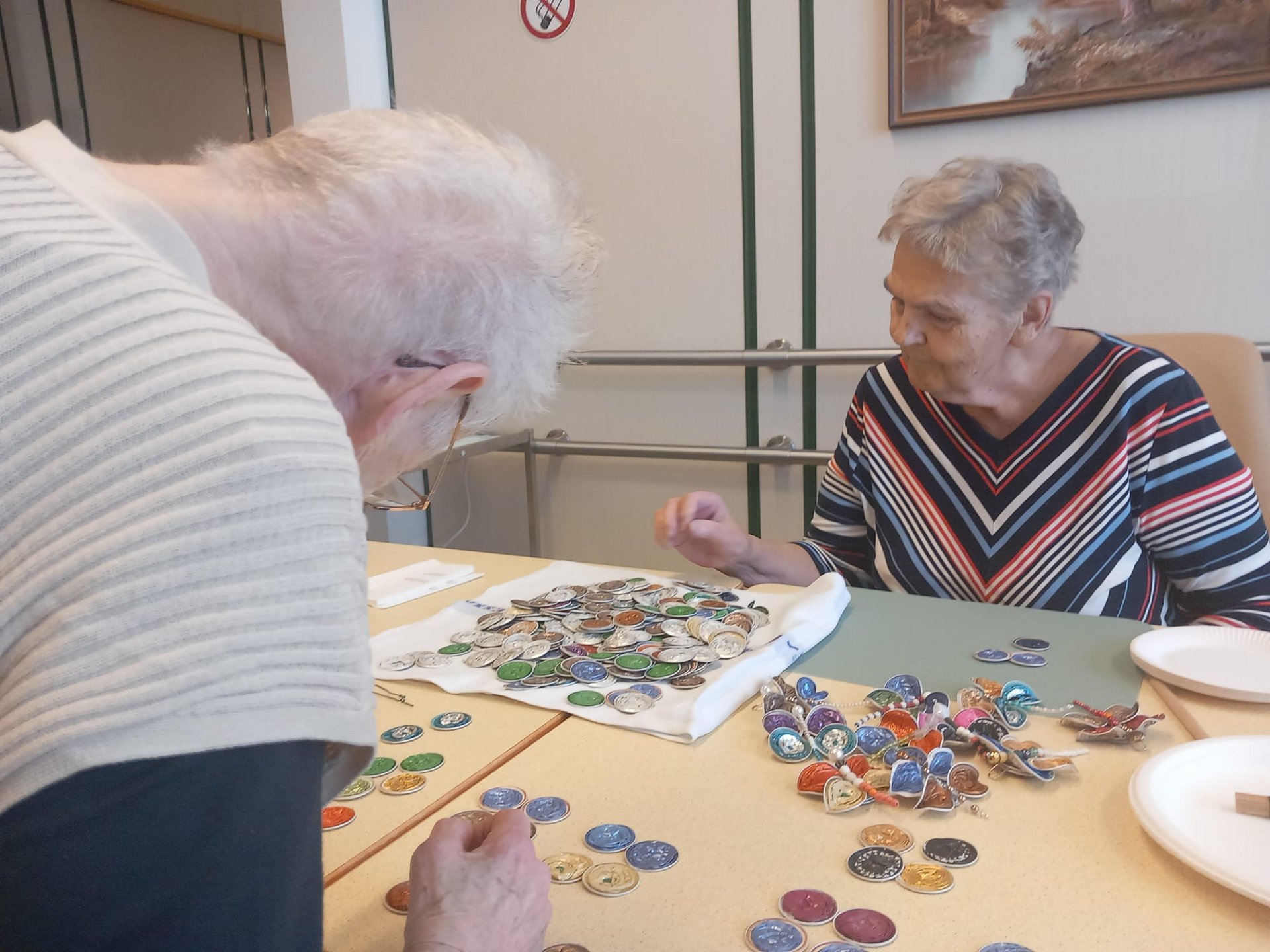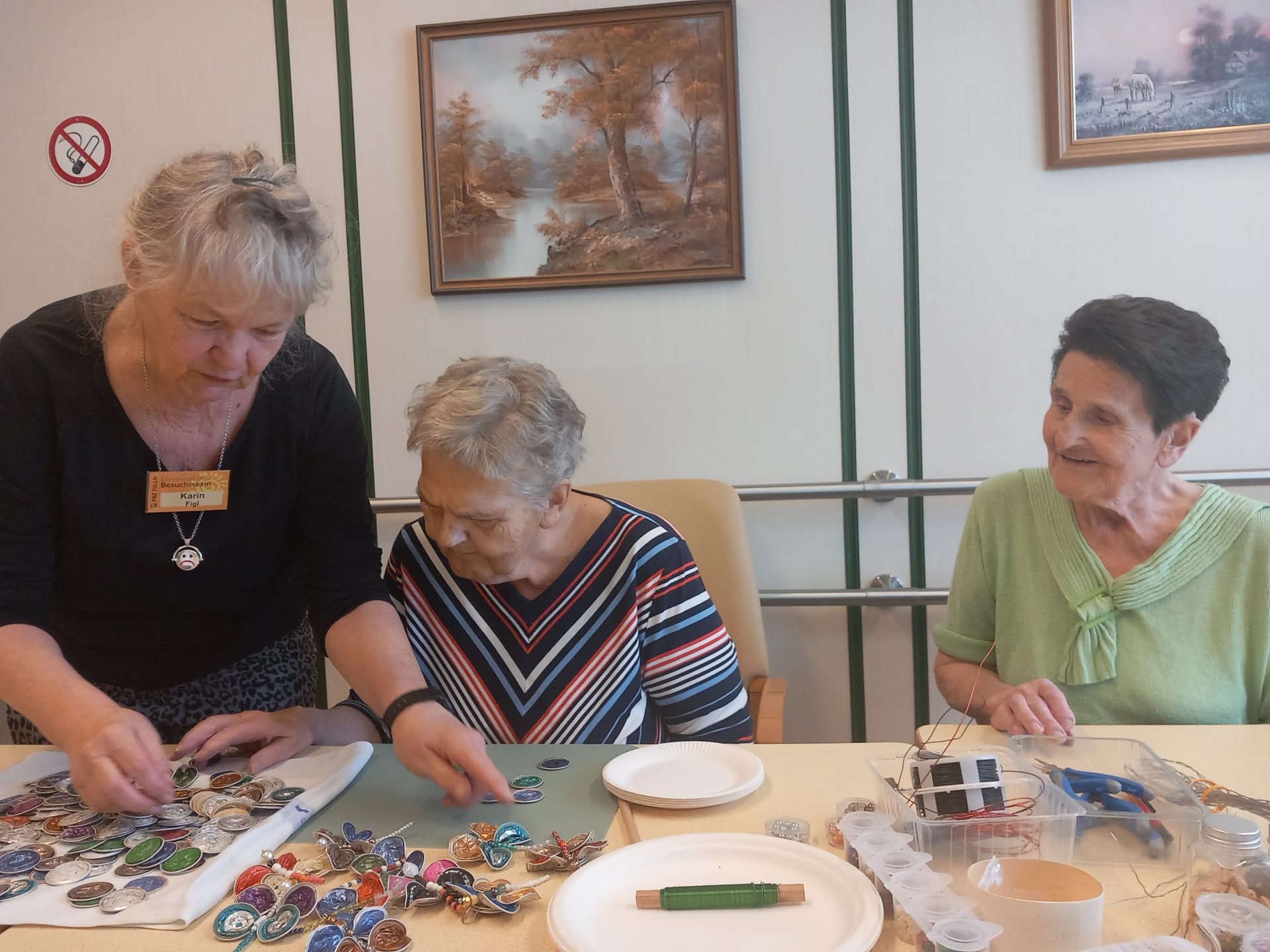 Bereits zur Weihnachtszeit entstanden mit viel Geschick dekorative Engel für den Christbaum. Da die Begeisterung am gemeinsamen Werken ungebrochen groß war und genügend Kapseln gesammelt wurden, entstanden im Frühjahr 2026 farbenfrohe Schmetterlinge. Diese schmücken nun die Zimmertüren der Bewohnerinnen und Bewohner und bringen Farbe und Freude in den Alltag.